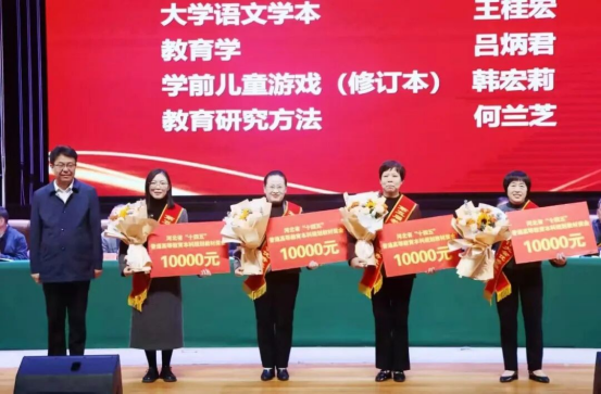 大会对我校干部教师取得的国家级一流课程、河北省“十四五”普通高等教育本科规划教材主编、2025年河北省教学名师和优秀教学团队、第五届河北省高校教师教学创新大赛、河北省高校青年教师教学竞赛、第二届河北省普通本科高校课程思政教学竞赛、入选教育部典型案例、河北省优秀基层教学组织、2025年指导学生获得国家级学科竞赛指导教师、沧州师范学院2025年青年教师讲课大赛获奖教师等荣誉和称号进行了表彰。与会领导为获得表彰的集体和个人颁奖。这份荣誉不仅是对过去努力的肯定,更是对教师们持续深耕课堂、潜心育人的鼓励。