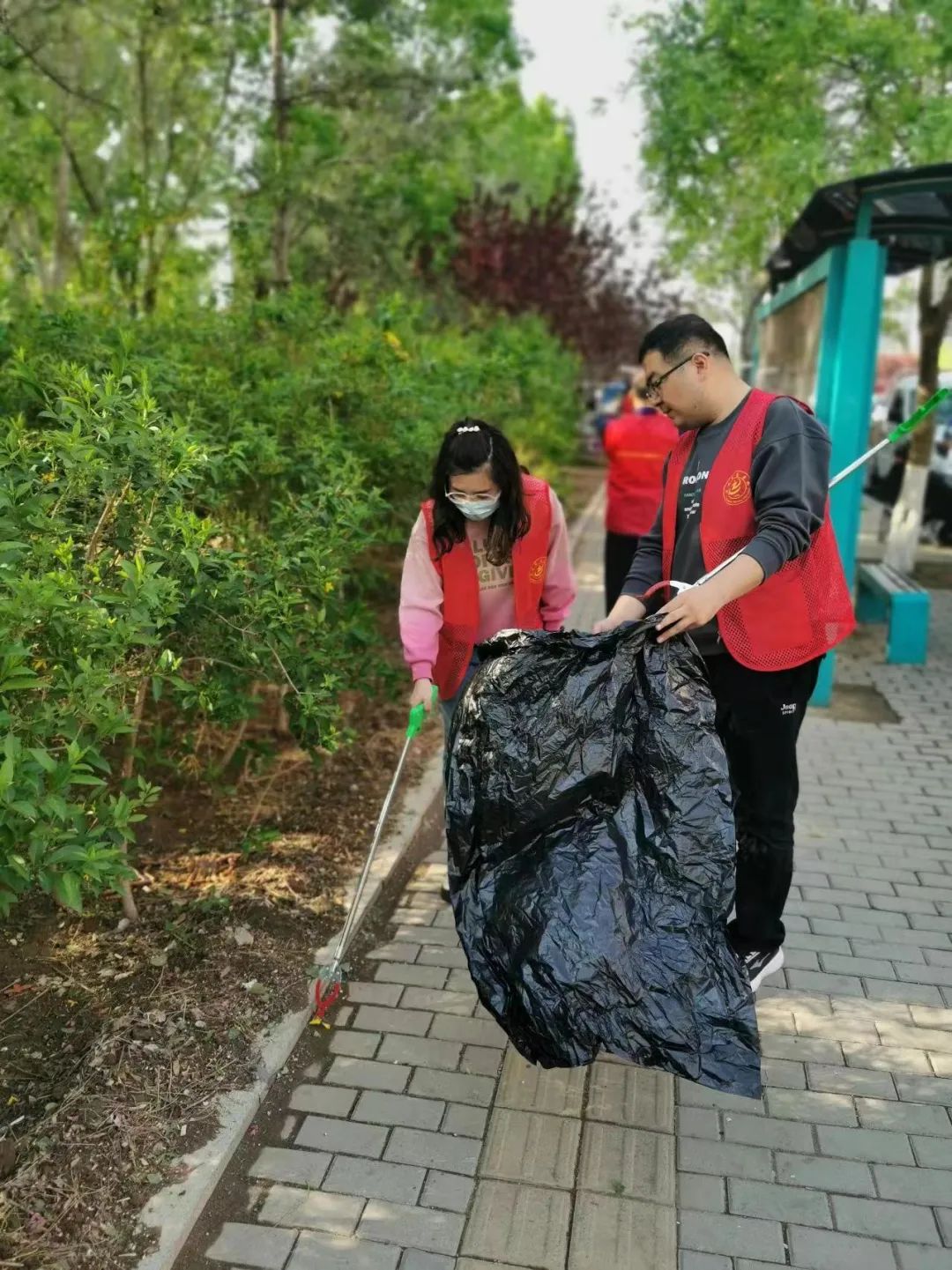 活动中,志愿者们对我校大门口至张庄子村主要路段上的垃圾进行清扫,特别针对草丛、绿地等卫生死角进行了清理。